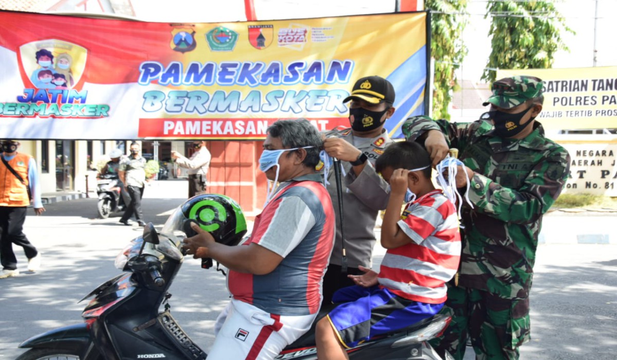 “Program ini juga dalam rangka mendukung program ‘Jawa Timur Bermasker’ serta sebagai bentuk implementasi dari instruksi Presiden RI,” kata kapolres.