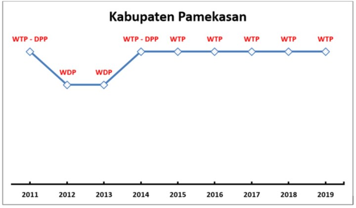 Raihan WTP tahun 2019 ini merupakan yang kelima kalinya secara berturut-turut diperoleh Kabupaten Pamekasan, sejak 2015 hingga 2019. Sebelumnya pada 2014 Pemkab Pamekasan juga berhasil meraih opini WTP, akan tetapi dengan paragraf penjelaskan (WTP-DPP).