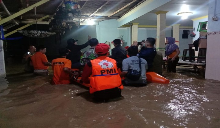 Sebanyak dua buah perahu karet dioperasikan guna mengevakuasi warga korban banjir yang terjebak di dalam rumahnya.
