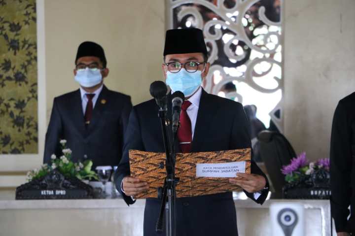 Menurut dia, pelantikan ini dilakukan karena berkaitan dengan nomenklatur yang baru, sedangkan Perbub sudah di dok. Sehingga, pelaksanaan pelantikan terhadap para pejabat harus segera dilaksanakan. “Dan alhamdulillah saat ini, pelantikan terhadap para pejabat tersebut telah terlaksana,” ucap bupati muda ini.