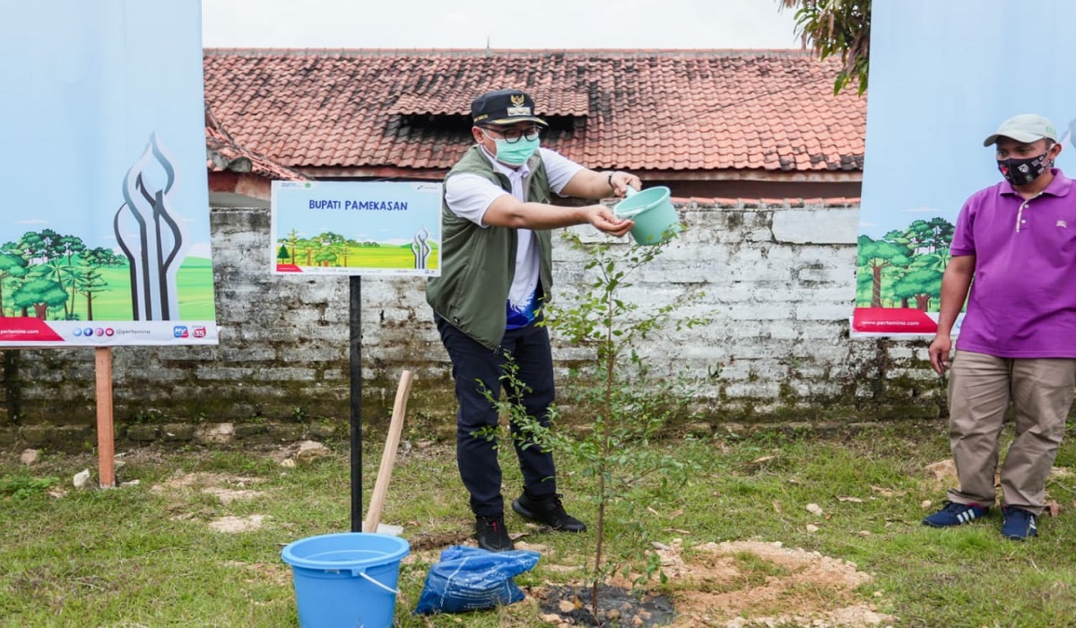 PAMEKASAN HEBAT – Pemerintah Kabupaten Pamekasan bersama PT Pertamina, Senin (22/2/2021), meluncurkan program ‘langit biru 2021’ yakni program penanaman pohon secara serentak, sebagai upaya untuk menghijaukan wilayah itu, meningkatkan resapan air, dan mengurangi polusi udara dan peluncuran itu ditandai dengan penanaman pohon.