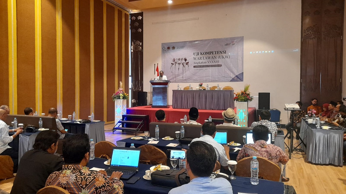 Koordinator Tim Penguji Dewan Pers Djoko Tetuko dalam sambutannya menyatakan, UKW merupakan ikhtiar Dewan Pers dalam rangka meningkatkan profesionalisme wartawan. PWI yang merupakan organisasi prfesi wartawan merupakan satu dari 30 lembaga pelaksana uji kompetensi selain perguruan tinggi, perguruan tinggi dan perusahaan media. (KIM PAMEKASAN HEBAT)