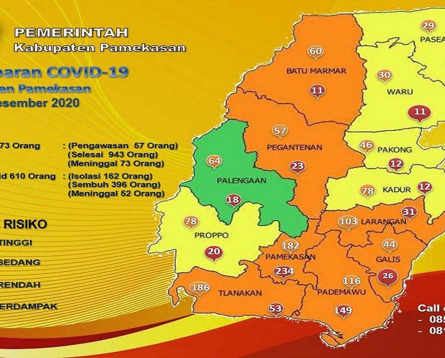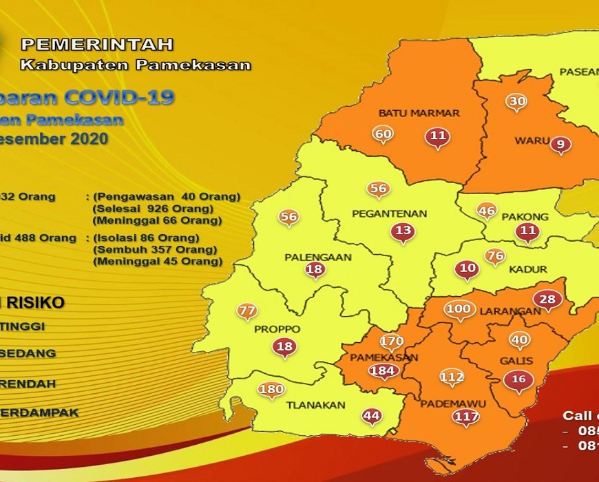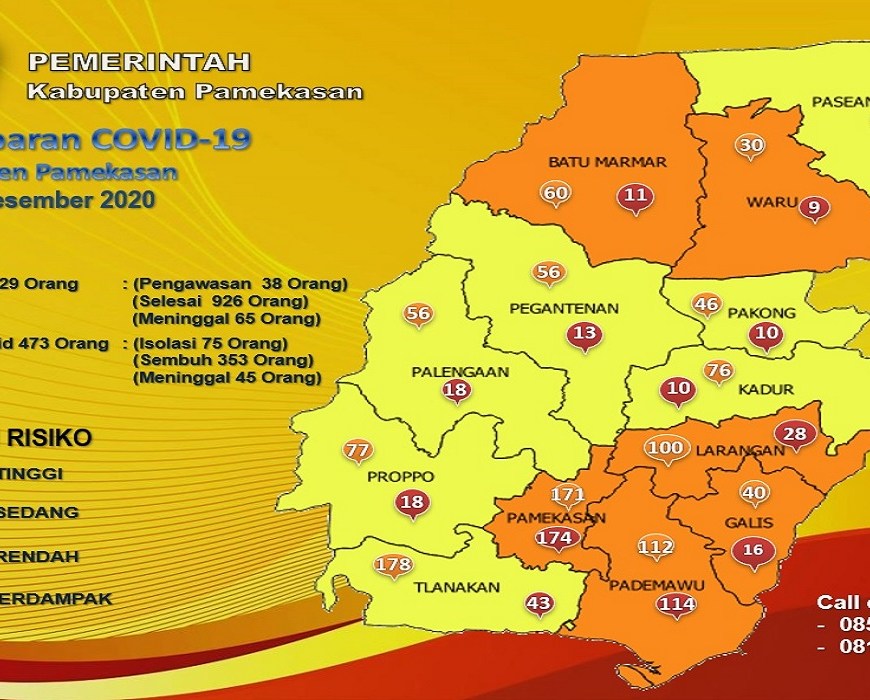 PAMEKASAN HEBAT – Kasus aktif COVID-19 di Kabupaten Pamekasan per tanggal 3 Mei 2022 tinggal dua orang, berkurang satu orang dibanding pekan sebelumnya, sedangkan jumlah total kasus aktif se-Madura tinggal 3 orang, atau berkurang dua orang dibanding pekan sebelumnya. Berdasarkan data yang dirilis masing-masing Dinas Kesehatan di empat kabupaten di Pulau Madura per tanggal 4 Mei 2022, kasus aktif COVID-19 kini hanya di dua kabupaten, … Lanjutkan membaca Kasus Aktif COVID-19 di Pamekasan Per 3 Mei 2022 Tinggal 2 Orang