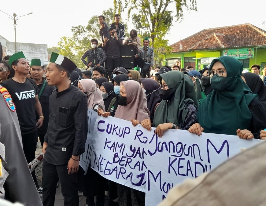 PAMEKASAN HEBAT – Mahasiswa dari berbagai perguruan tinggi yang tergabung dalam organisasi Himpunan Mahasiswa Islam (HMI) Cabang Pamekasan, Jumat (8/4/2022) sore, berunjuk rasa di depan kantor DPRD setempat, menyuarakan penolakan kenaikan harga bahan bakar minyak (BBM). Selain menolak kenaikan BBM, para aktivis HMI dari berbagai komisariat dari berbagai Perguruan Tinggi di Pamekasan ini juga menyuarakan agar pemerintah segera melakukan stabilisasi harga minyak goreng dan menghentikan … Lanjutkan membaca HMI: Stabilkan Minyak Goreng, Hentikan Wacana 3 Periode, Tolak Kenaikan BBM